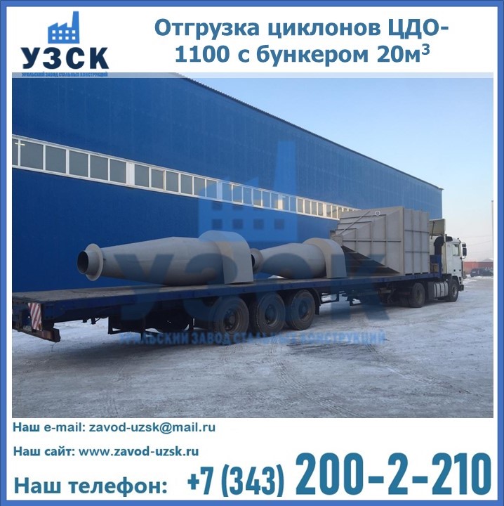 Циклоны ЦДО-1100 с бункером на 20 кубов были отгружены в декабре 2018 года в г. Новосибирск Жуковский.